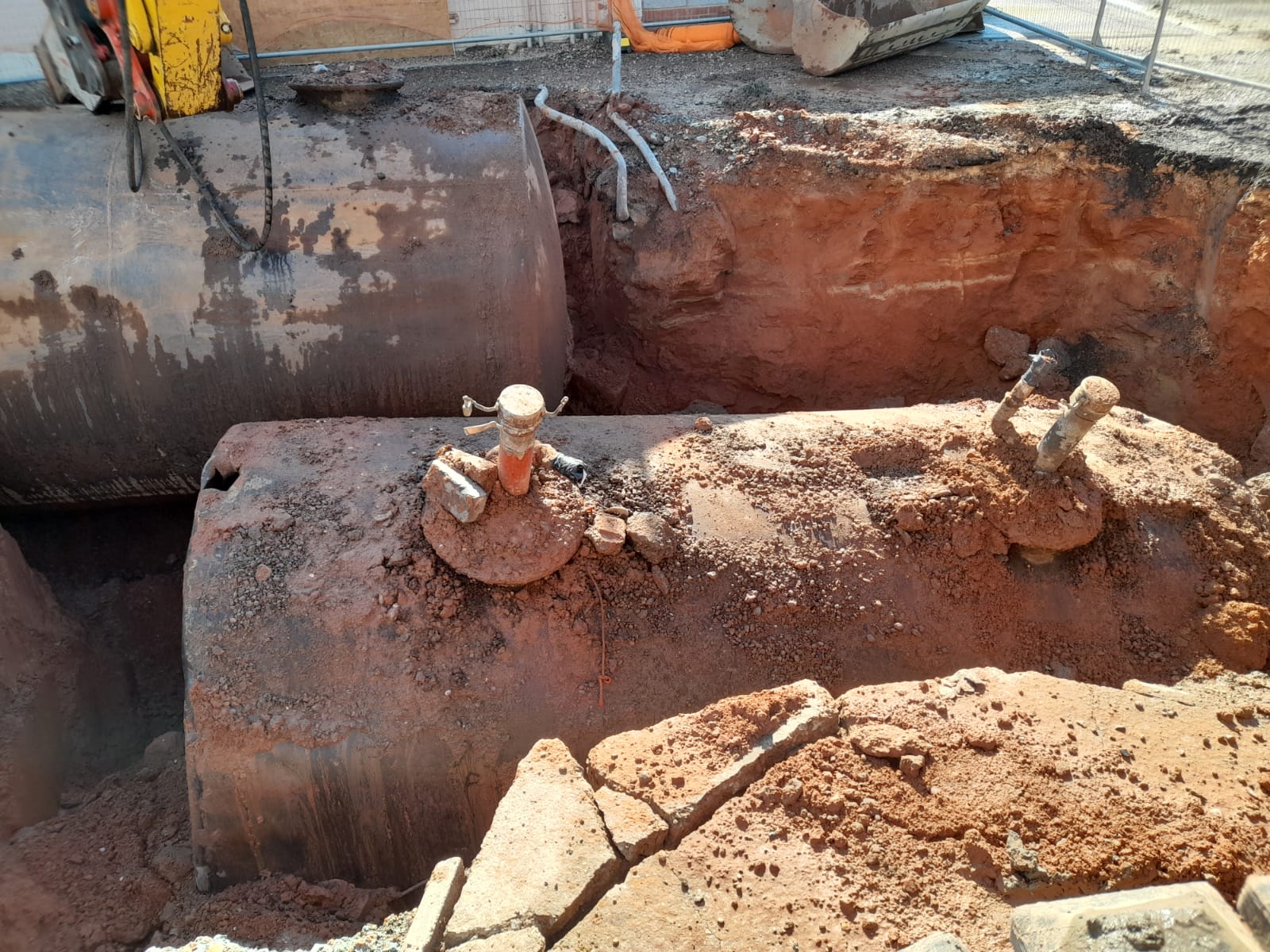 A redundant forecourt required the old disused below ground storage tanks to be removed and decommissioned. The tanks had been certified as being gas free of flammable vapours to allow the excavation removal process.